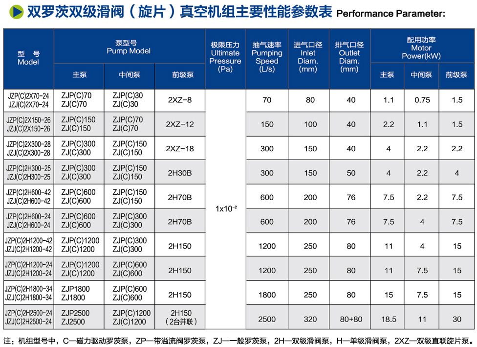 JZP(C)(2)H(X)羅茨滑閥(旋片)真空機(jī)組 / JZPH1200-42機(jī)組